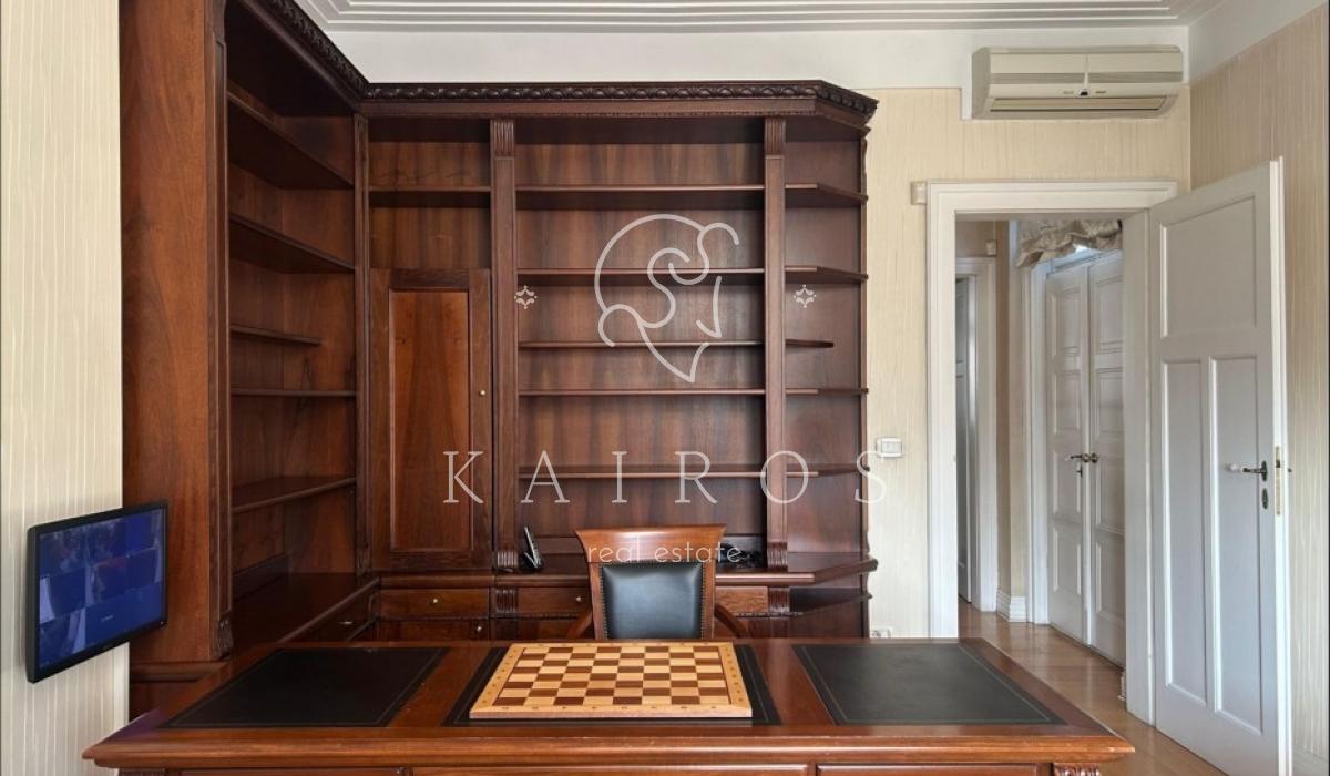 Poseban ambijent stvara dnevni boravak sa kaminom i bibliotekom, dok ostale prostorije omogućavaju fleksibilnu organizaciju prostora — za porodični život, rad od kuće ili njihovu promišljenu kombinaciju.Terasa i dvorište diskretno proširuju prostor i nude retku mogućnost boravka na otvorenom u ovom delu grada.