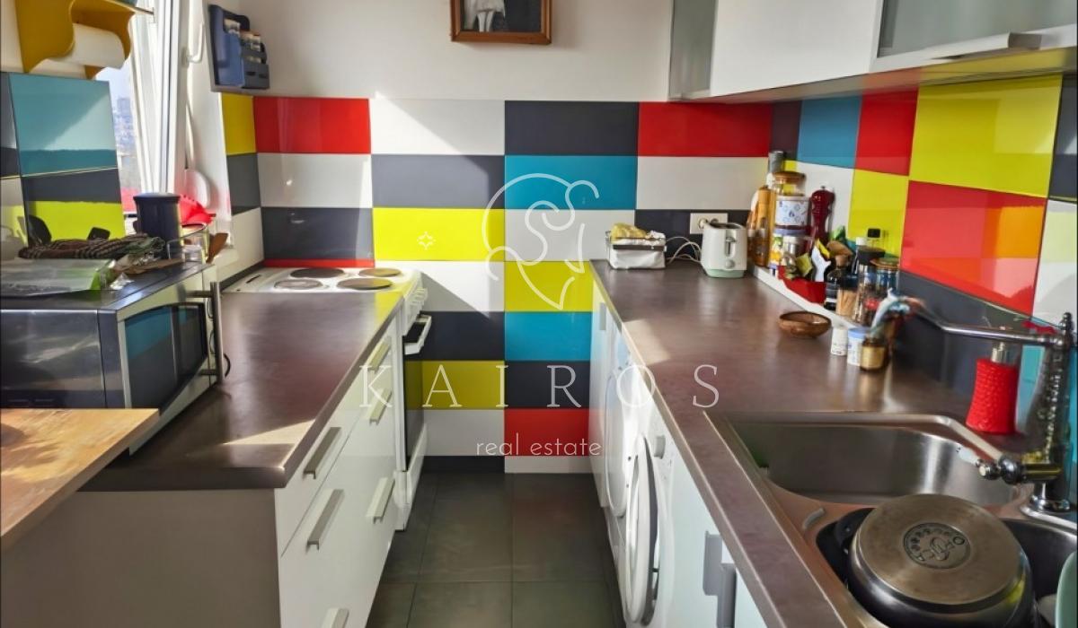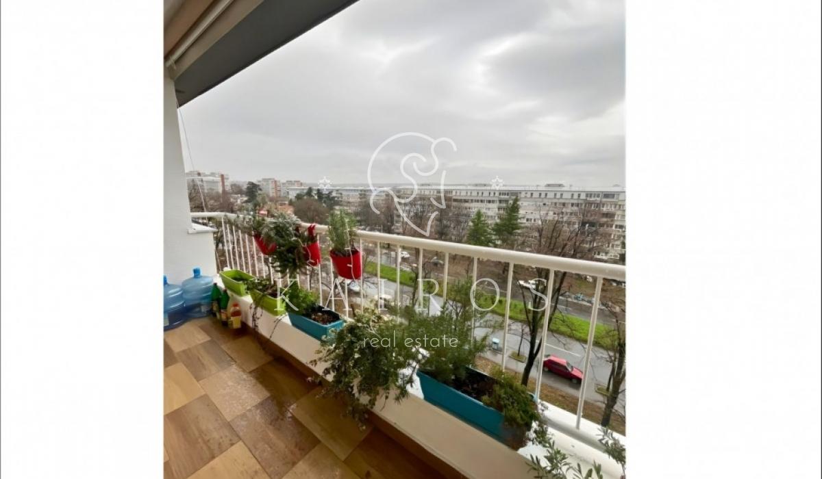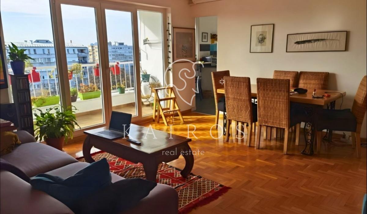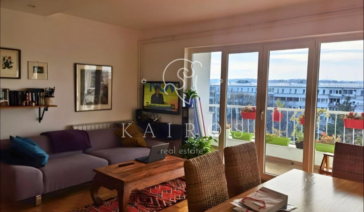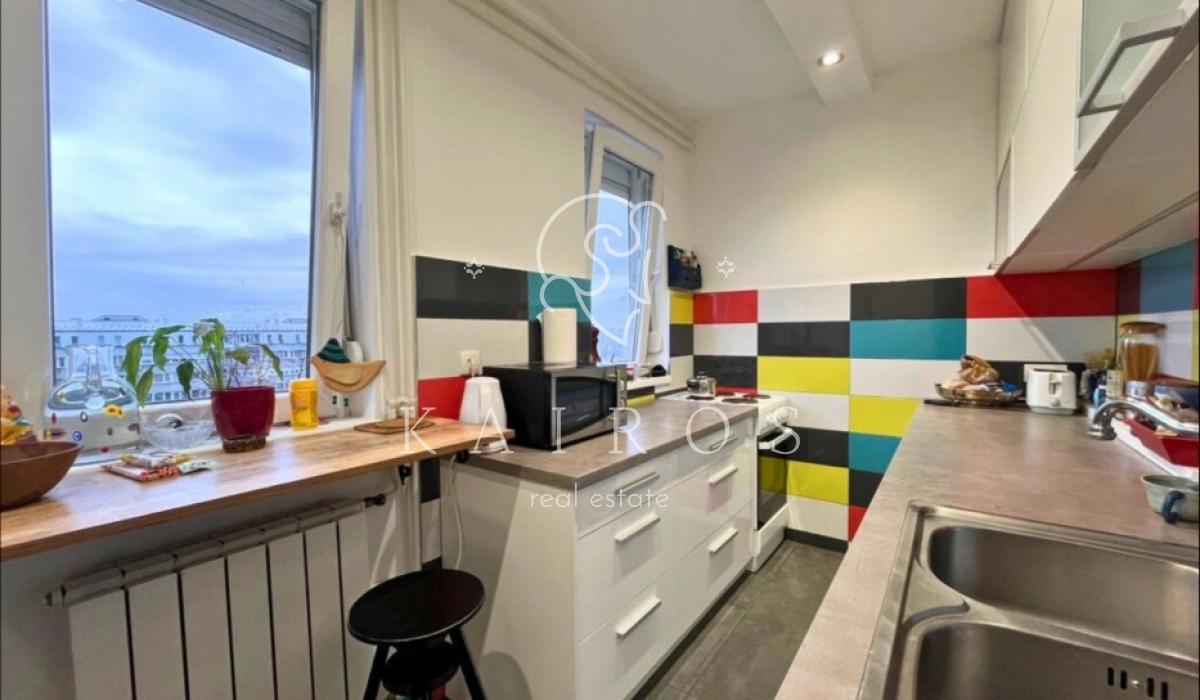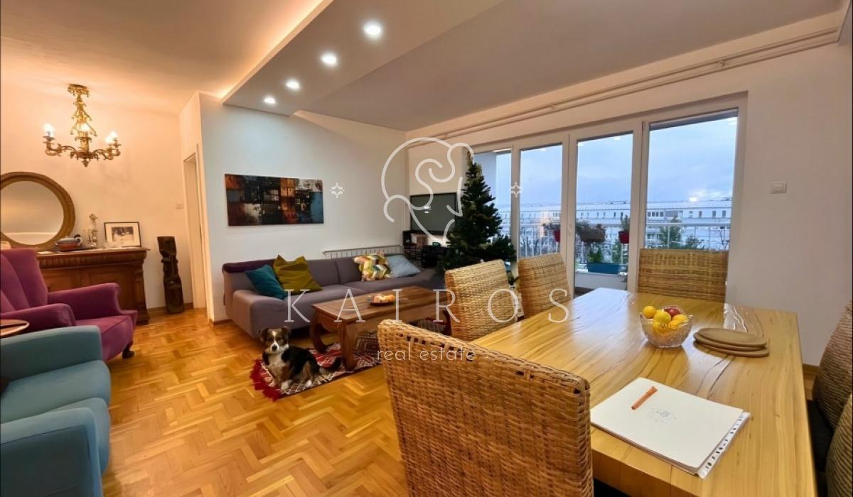 Na 5. spratu uredne zgrade u Ustaničkoj, sa liftom do 4. sprata, nalazi se temeljno renoviran stan od 93 m² sa terasom i otvorenim pogledom.